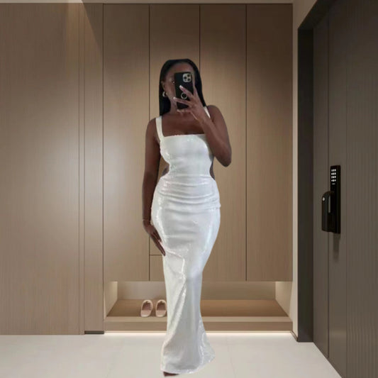 sexy women's 2024 dress , club party flash backless drill chain pleat strap skirt