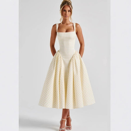 A vacation halter Dress with floral prints, a chest-showing dress, and a stylish long dress for women