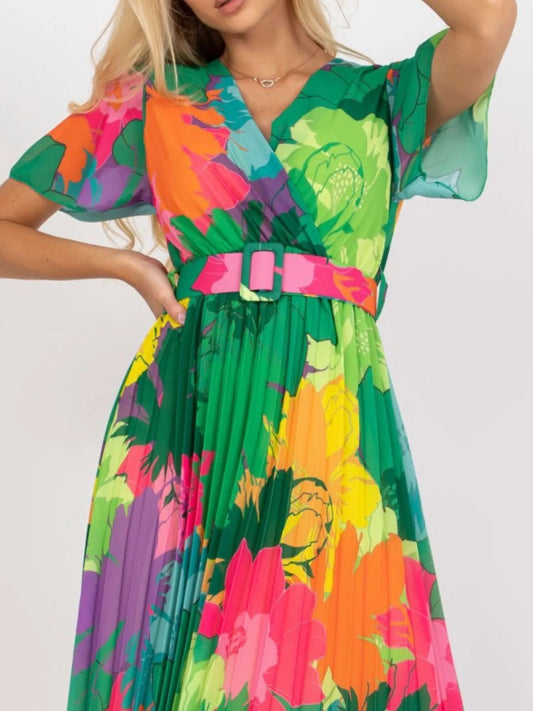 Tropical Leaf Print V-Neck Maxi Cami Dress
