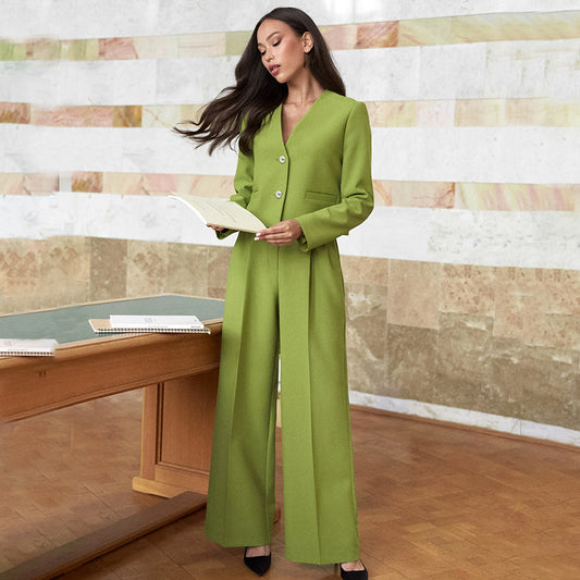 Green V-neck commuter casual women's suit New fall fashion women's two-piece set
